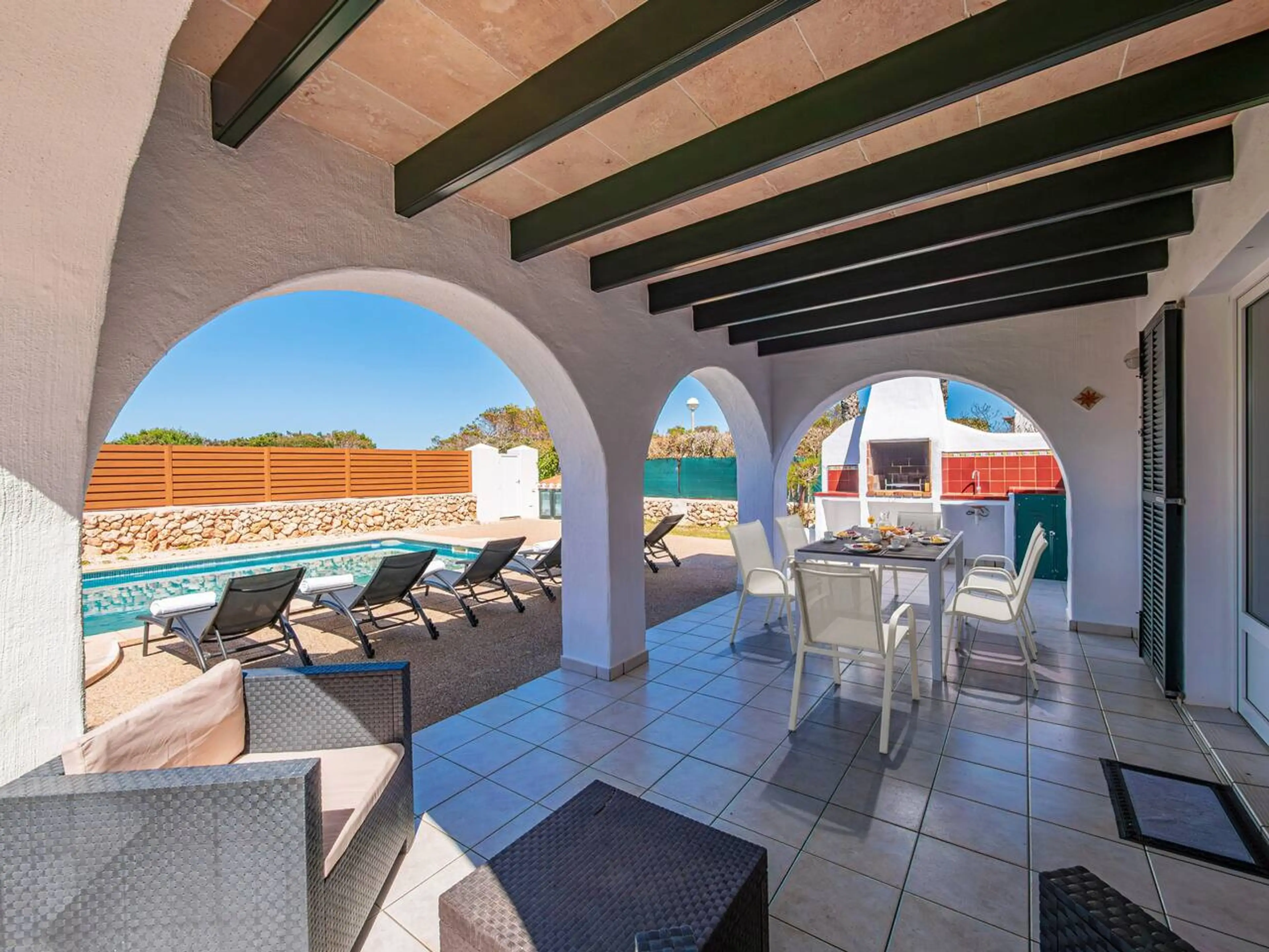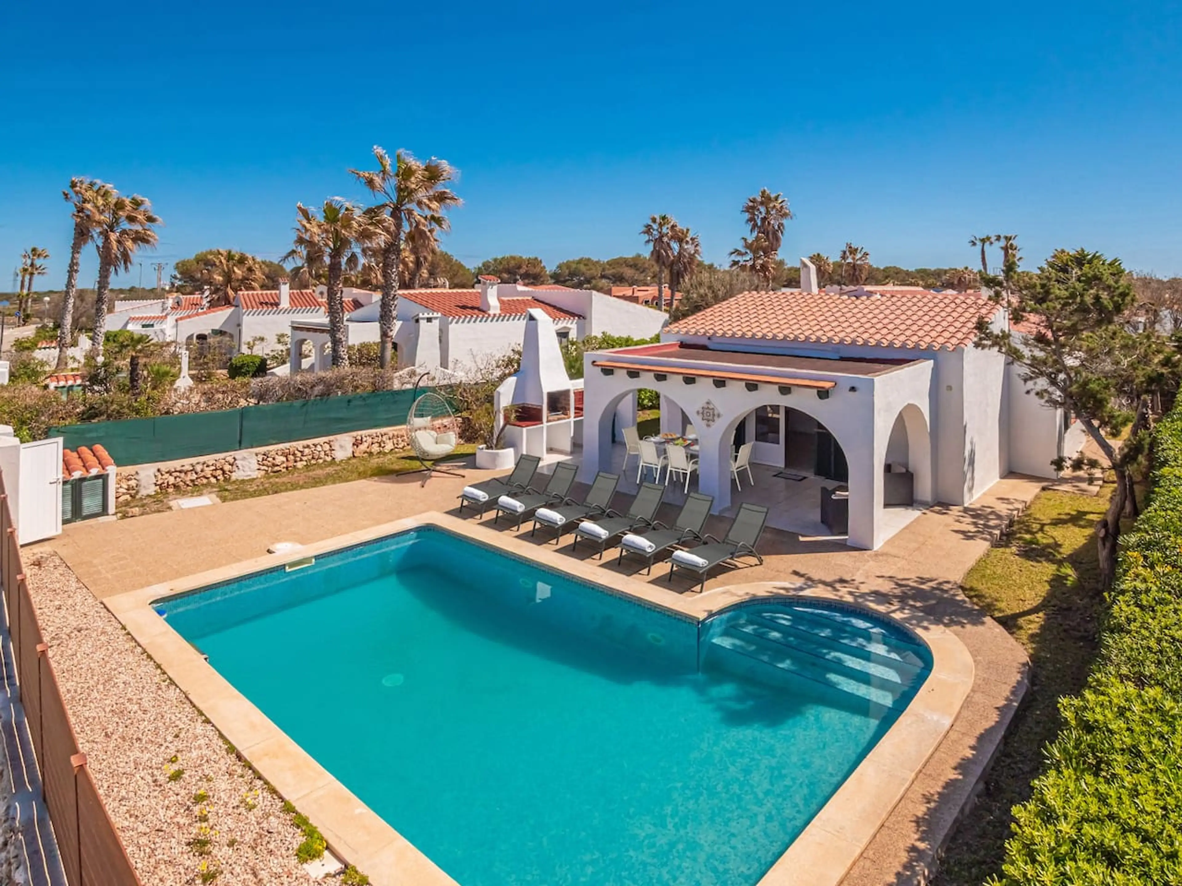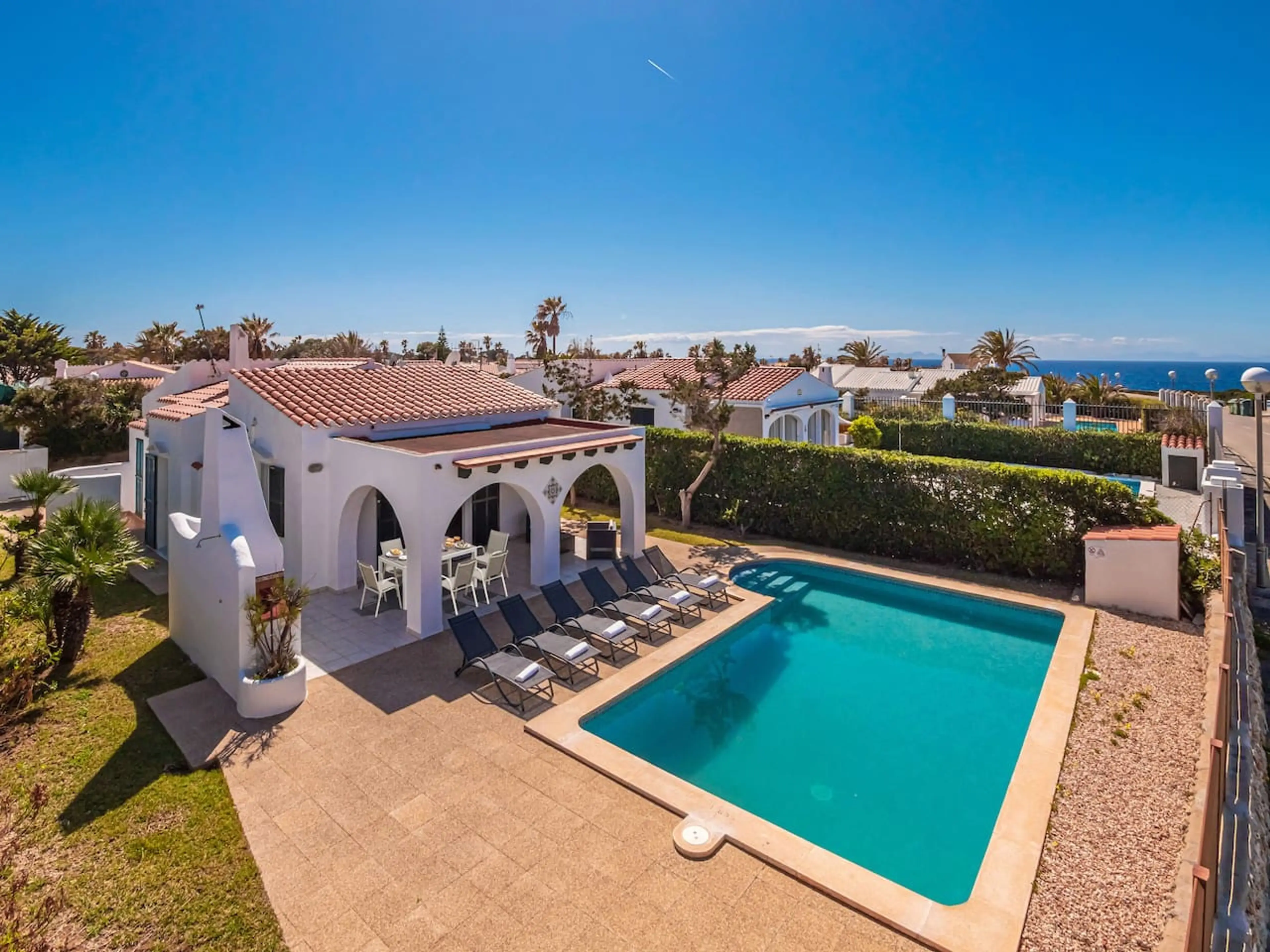 ¡Disfrute de la escapada mediterránea definitiva en Cala en Bosc! Esta hermosa villa es el refugio menorquín perfecto. Relájese en su espectacular piscina privada, tome el sol y disfrute de inolvidables cenas al aire libre en la terraza privada equipada con barbacoa. La casa cuenta con 3 cómodos dor...
